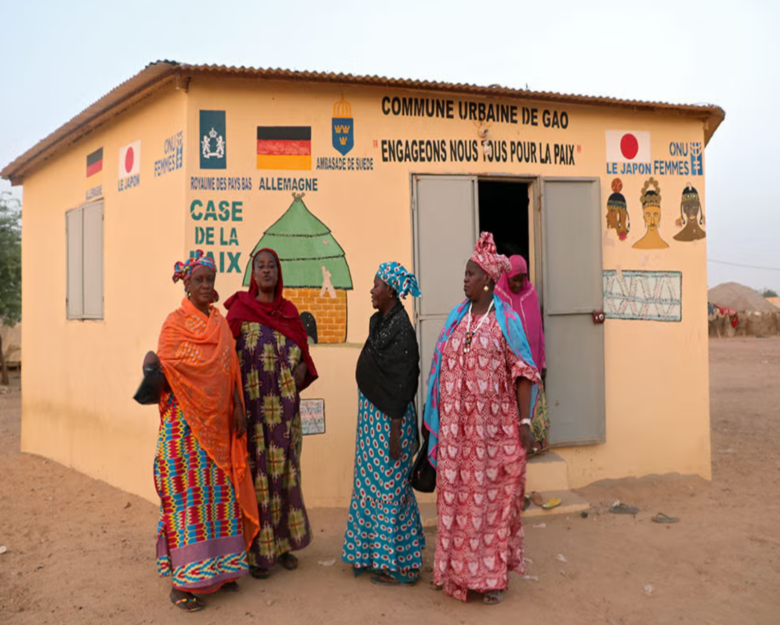 The Women’s Peace Hut in Gao, one of the biggest huts among the 28 operational ones in Mali, was brought about by UN Women in 2014 with financial support from the governments of Germany, the Netherlands, Sweden, Japan and the UN Peacebuilding Fund. Here, women from different ethnic communities such as the Songrai, Bambara, Peulh and Touareg, assemble together “to discuss and reconciliate disagreements, exchange experiences and foster social cohesion”6. Sporadically, politicians, religious leaders and state authorities are invited to discuss the problems women face, especially with respect to security.